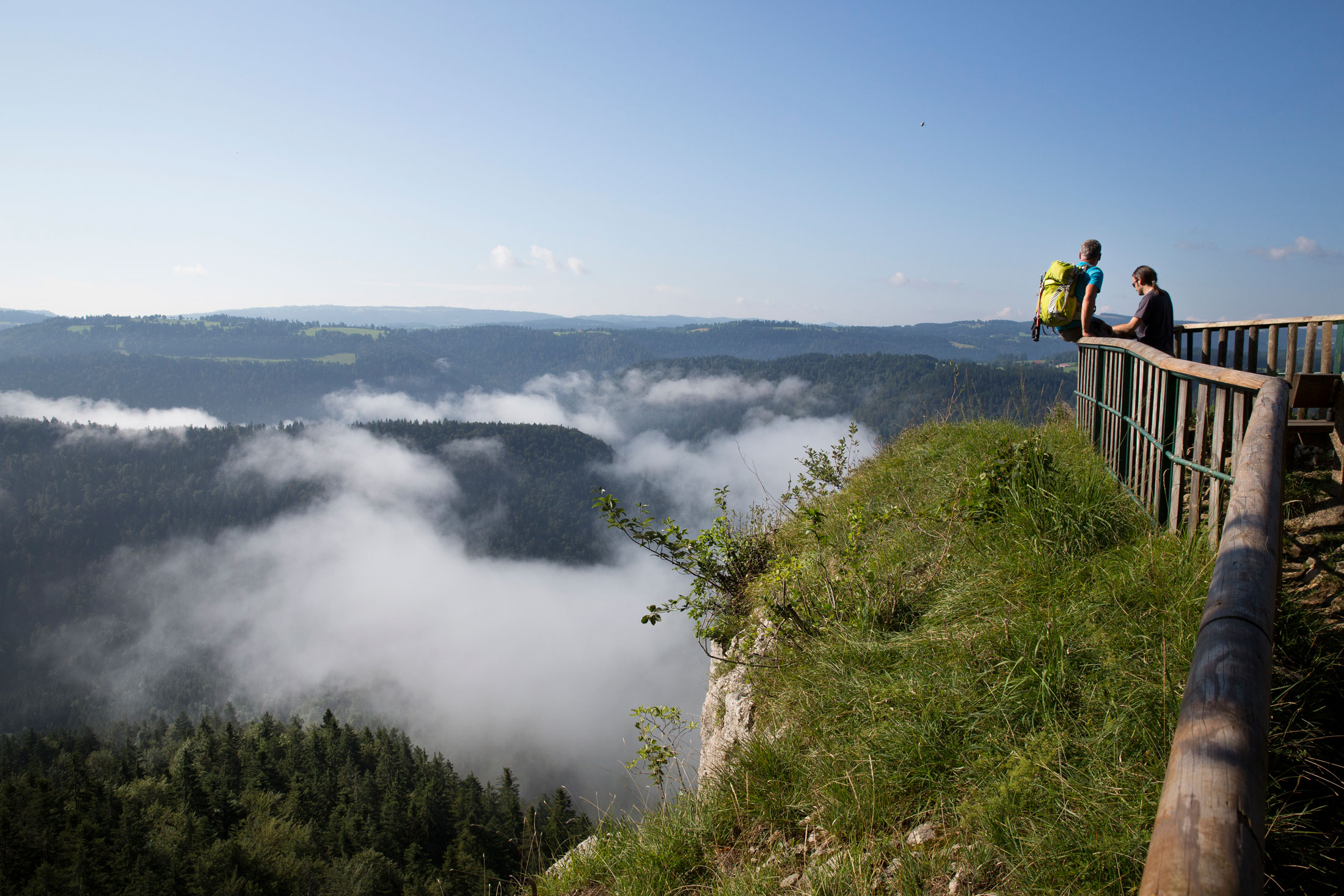 Cette boucle de 77 kilomètres en 5 étapes, franchit la frontière par 2 fois avant de rejoindre le point de départ à Maîche (en France). Vous traversez des sites touristiques remarquables comme les Echelles de la Mort et découvrez les richesses du patrimoine local : le lac de Biaufond et sa borne frontière immergée, la combe glacière des Louisots, la Gentiane jaune mais aussi des constructions qui témoignent du patrimoine culturel et historique de la région comme l’ancienne ligne du tacot conduisant de Maîche à Morteau et les fermes à tuyé.