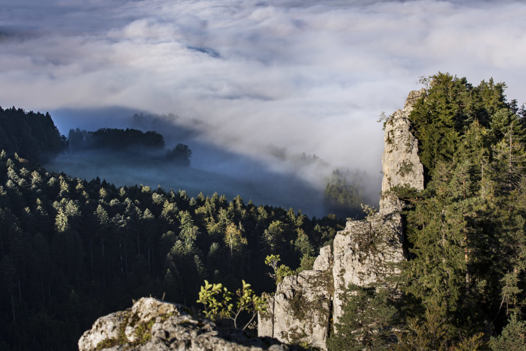 Vous quittez le village de Goumois, blotti au creux d’un vallon, qui a la particularité d’être à cheval sur les deux pays. Il est entouré par de hautes falaises calcaires dont la fameuse tête de singe. Vous vous élevez doucement en direction de Pommerat.  Si vous avez du courage vous pouvez quitter l’itinéraire et parcourir les 3,5 km pour découvrir la curiosité géologique de Château Cugny avec ses roches effondrées. Il faut revenir ensuite en arrière pour rejoindre Saint-Ursanne, ville médiévale aux multiples trésors.