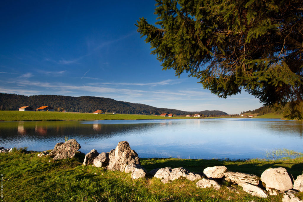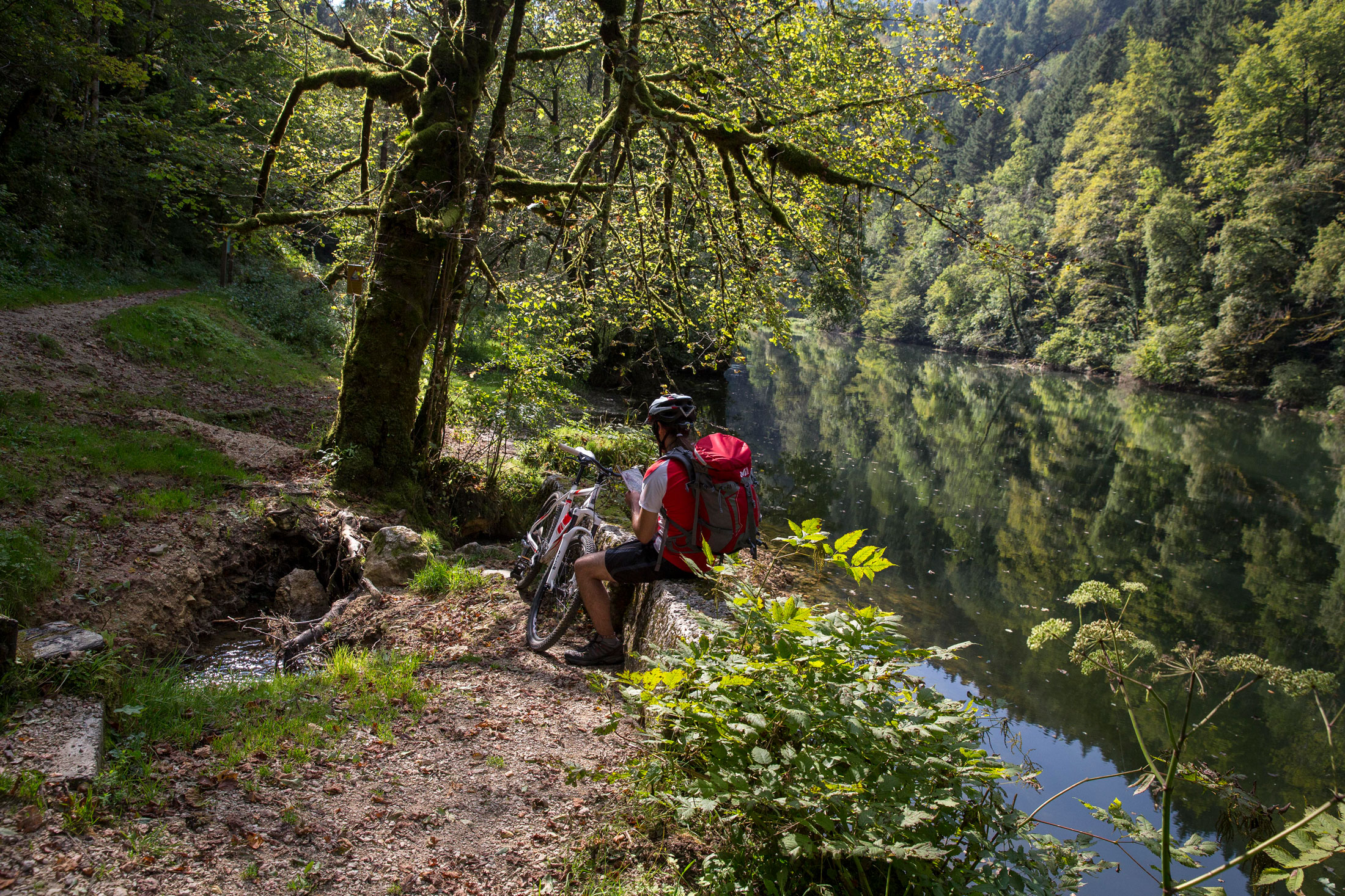 Vous partez du camping de Morteau, par la plaine du Doubs en direction de Grand’combe Châteleu. Le tracé suit celui de la GTJ VTT jusqu’à Combe Benoit. Puis, il rejoint la frontière au Bredot et descend dans la vallée de la Brévine ou un record de froid a été enregistré en 1987 à moins 41.8° ! Chaque année, en février, la fête du froid est une animation pittoresque autour du lac des Taillères, patinoire naturelle très prisée des habitants. C’est aussi un lieu de baignade bucolique aux beaux jours. Vous rejoignez ensuite le petit village de la Chaux-du-Milieu en passant près de belles fermes.