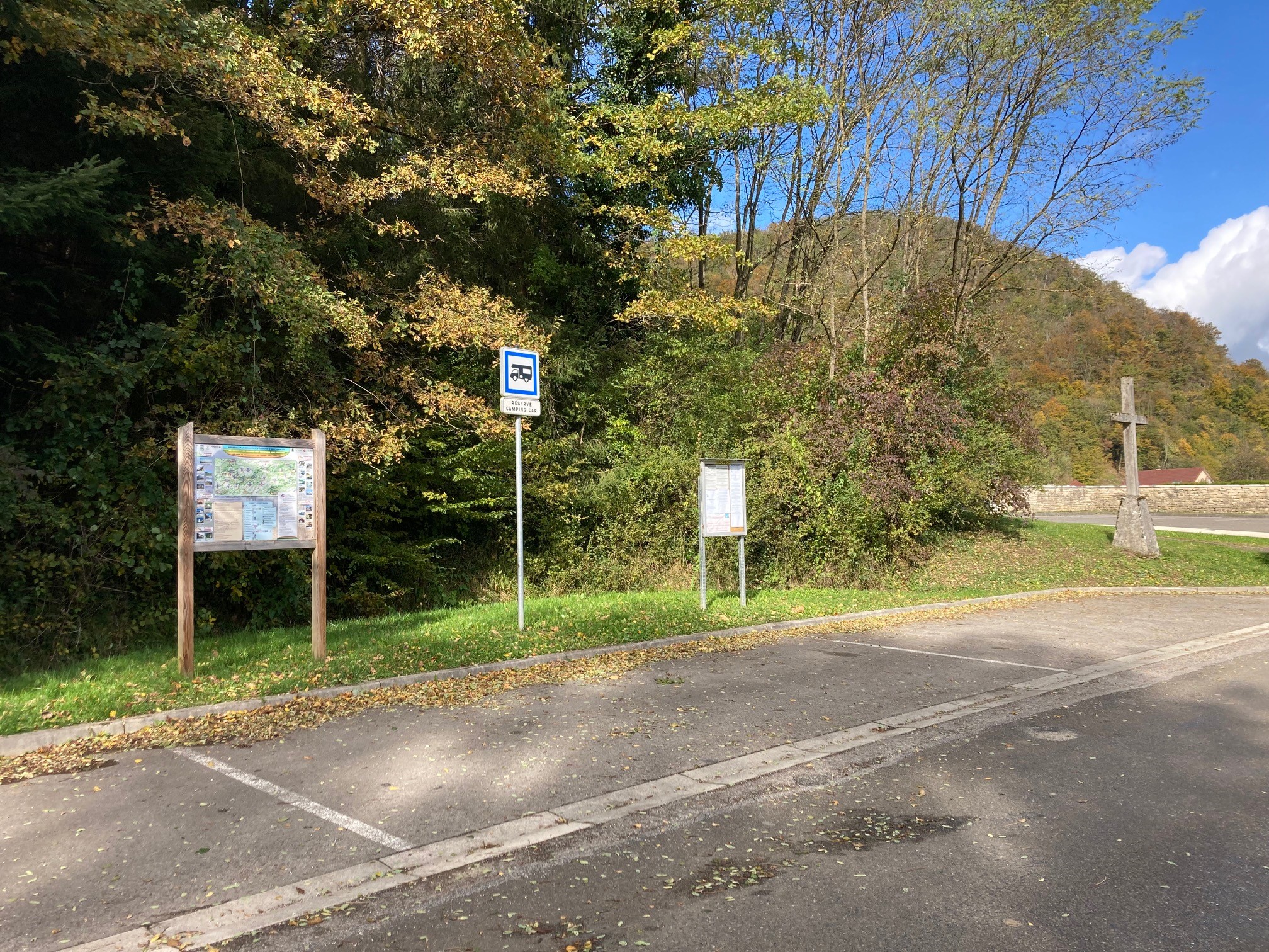 Aire de stationnement avec trois emplacements le long d’un chemin et à proximité du Doubs.