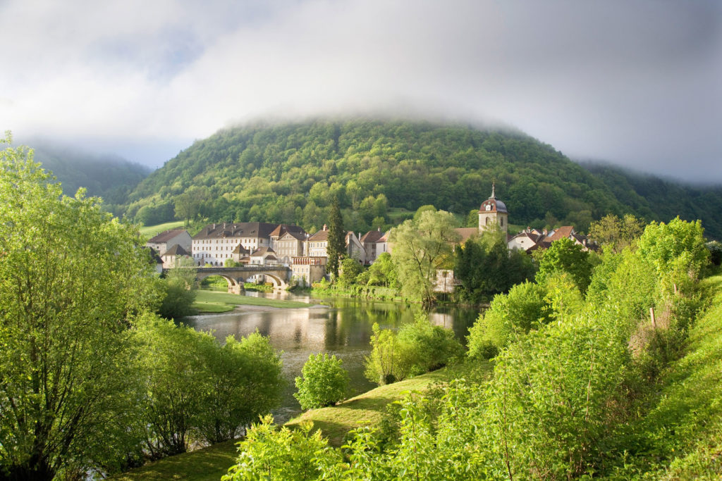 From Réclère you follow the border along the ridge, before reaching Montécheroux, which was internationally renowned for the manufacture of tools for the watchmaking and medical industries. The path then skirts the rocky ridge overlooking St Hippolyte. You then come to the Grotte du Bisontin, a magnificent karstic arch that is said to have been a smuggler’s lair. It’s a magical place! Then you finish your tour in Saint-Hippolyte, a small medieval village at the confluence of the Doubs and Dessoubre rivers.